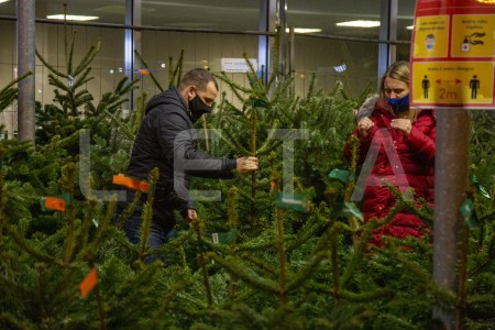 Ziemassvētku eglīšu tirdzniecība pie tirdzniecības centra "Spice".