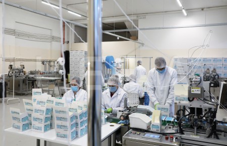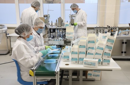 SIA "Juf" medicīnisko sejas masku ražotne Jelgavā.