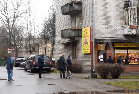 Cilvēki pie tirdzniecības centra "Alfa" pirms jauno tirdzniecības ...