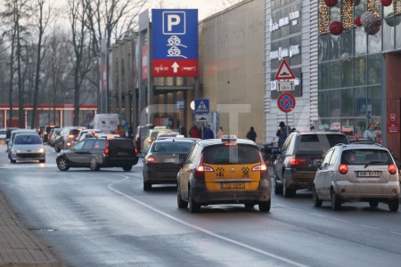 Automašīnas pie tirdzniecības centra "Spice" pirms jauno ...