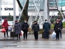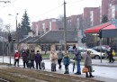 Cilvēku plūsma pie sabiedriskā trasporta pie tirdzniecības centa ...