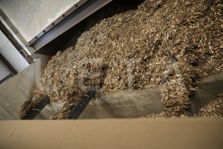 Šķelda jaunatklātajā šķeldas katlumāja Valmierā.