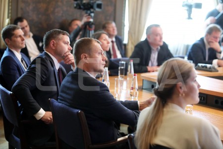 Latvijas Bankas prezidents Mārtiņš Kazāks (no labās) un Monetārās ...