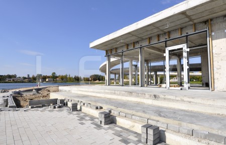 Kafejnīcas ar estakādi un glābšanas stacijas būvniecības darbi Kovšu ...