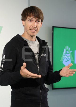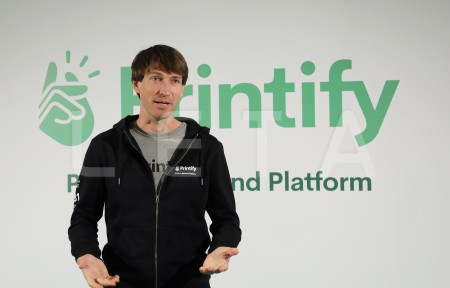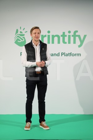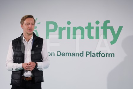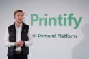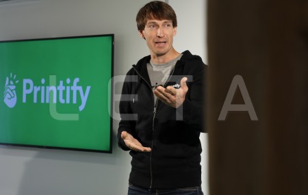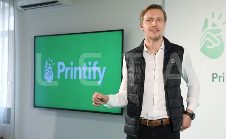 "Printify" līdzīpašnieks un dibinātājs Jānis Berdigans saka uzrunu ...