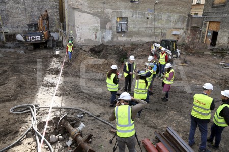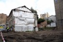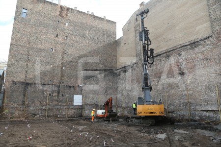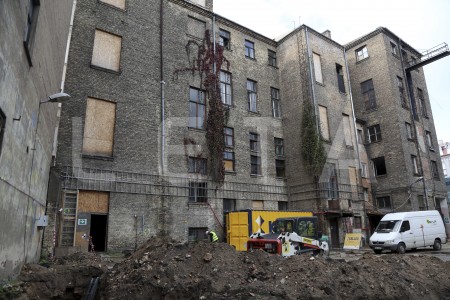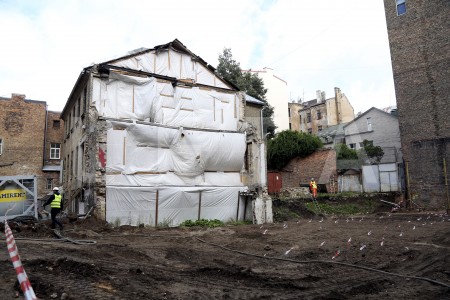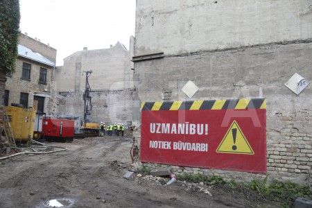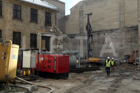 Jaunā Rīgas teātra ēkas būvdarbi Lāčplēša ielā.