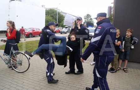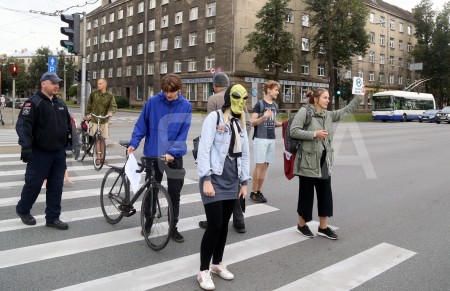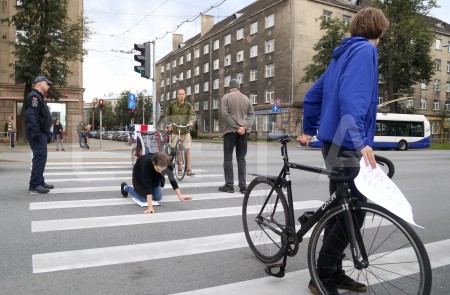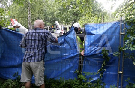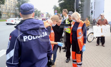 Protestējot pret koku zāģēšanu bijušajā velotreka teritorijā, "Marsa ...