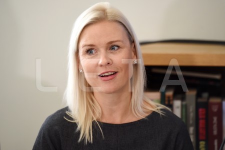 Bērnu slimnīcas fonda vadītāja Liene Dambiņa piedalās preses ...