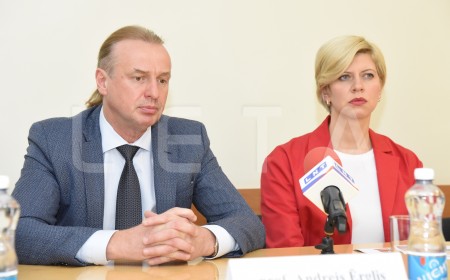 Veselības ministre Anda Čakša un kardiologs Vilnis Dzērve-Tāluts ...
