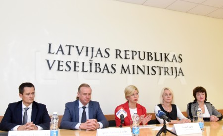 Veselības ministre Anda Čakša piedalās preses konferencē, kurā ...