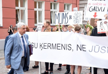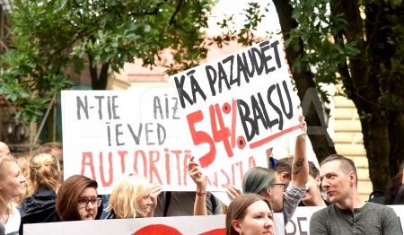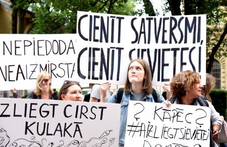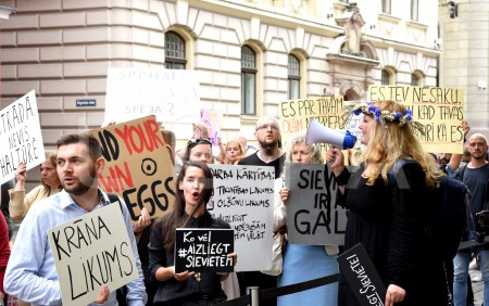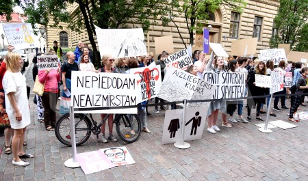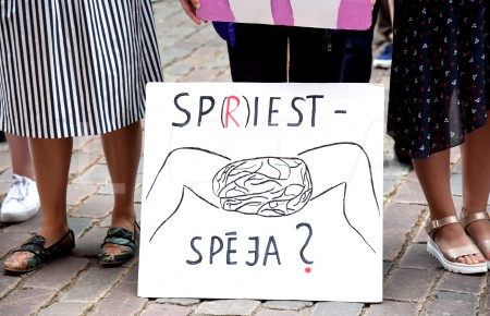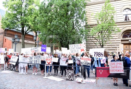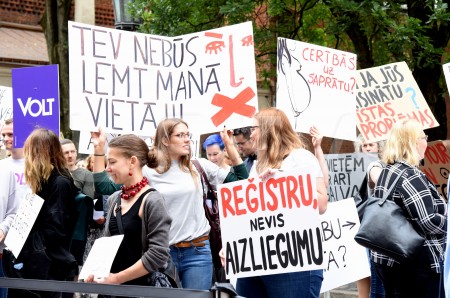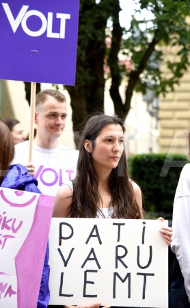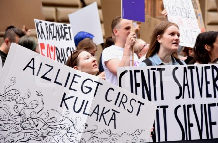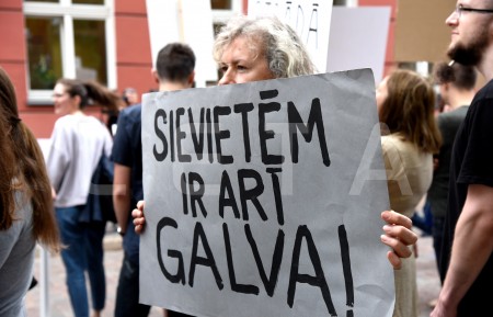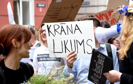 Pie Saeimas notiek protesta akcija pret aizliegumu nedzemdējušām ...