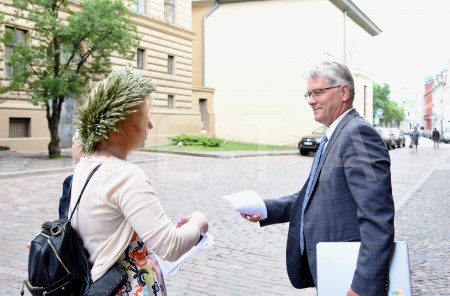 Izglītības un zinātnes ministrs Kārlis Šadurskis pie Saeimas nama, ...