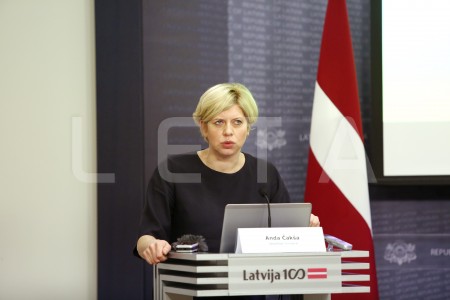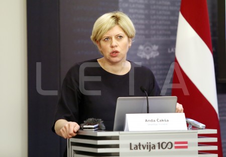 Veselības ministre Anda Čakša piedalās preses brīfingā par veselības ...