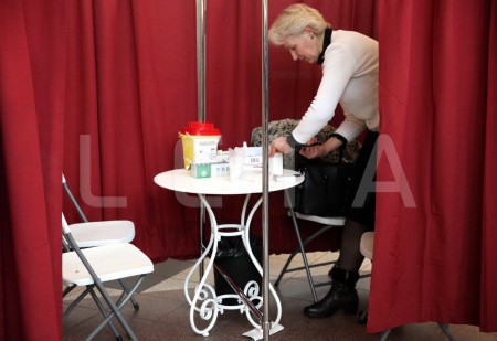 Īpašā "pop-up" testēšanas kabīne tirdzniecības centrā "Origo", kurā ...