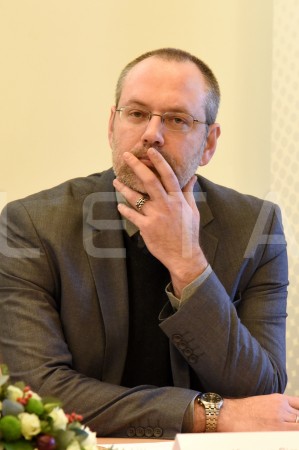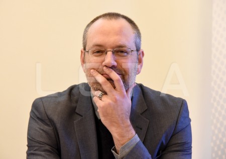 Rīgas Lutera draudzes mācītājs Kaspars Simanovičs piedalās diskusijā ...