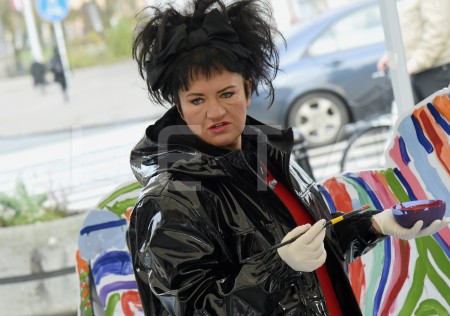 Māksliniece Elita Patmalnice (no kreisās) piedalās Starptautisko ...