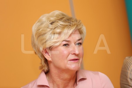 Bērnu slimnīcas virsārste Renāte Snipe piedalās preses konferencē ...