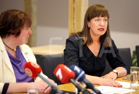 Veselības ministre Anda Čakša (no kreisās) un Paula Stradiņa ...
