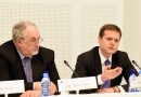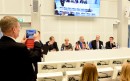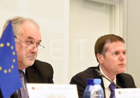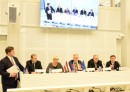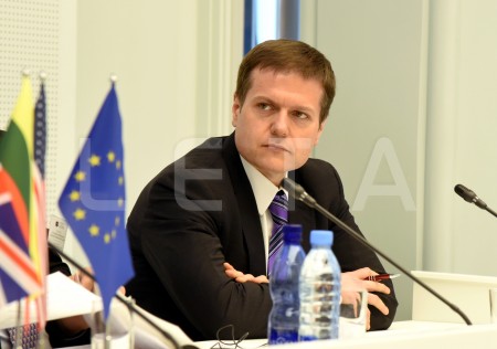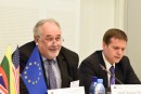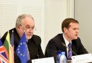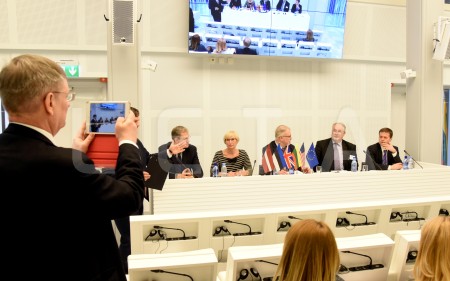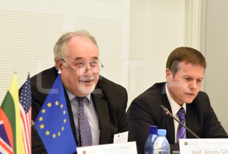 Konferences vadītājs, žurnālists Ansis Bogustovs (no kreisās), Rīgas ...