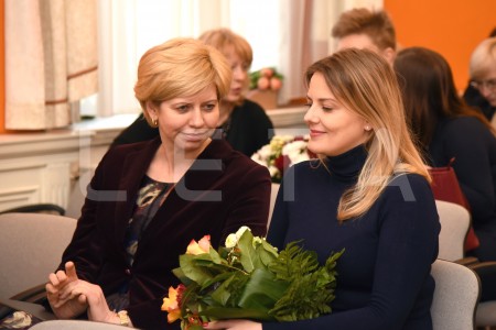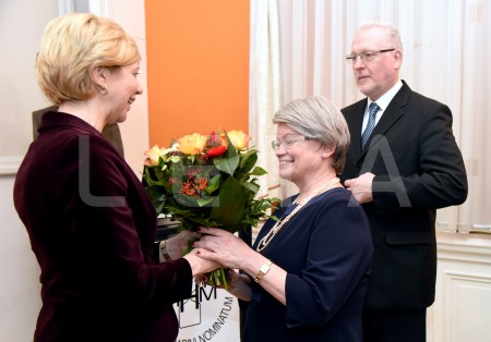 Veselības ministre Anda Čakša sveic Paula Stradiņa balvas ieguvējus, ...