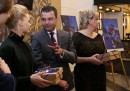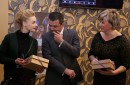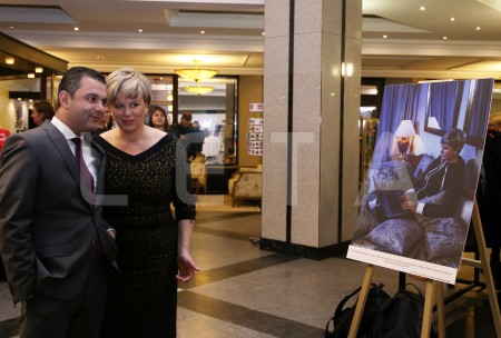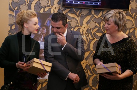 Aktrise Ieva Florence (no kreisās), Saeimas deputāts Hosams Abu Meri ...