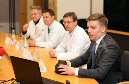 Sirds ķirurgs Edgars Freilibs piedalās preses konferencē, kurā ...