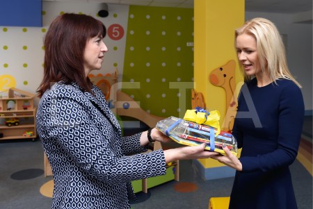 Bērnu slimnīcas fonda vadītāja Liene Dambiņa piedalās rotaļu istabas ...