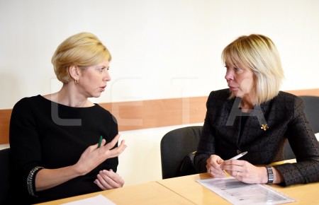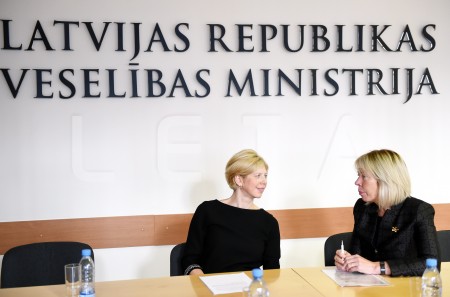 Veselības ministre Anda Čakša (no kreisās) un Veselības Ministrijas ...