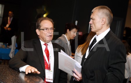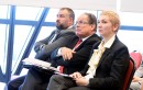 Saeimas deputāts Mārtiņš Šics (no kreisās) un konferences moderators, ...