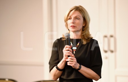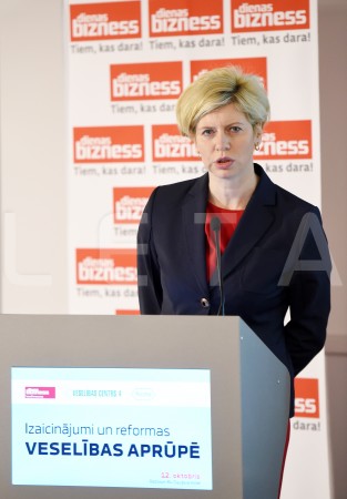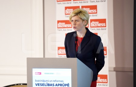 Veselības ministre Anda Čakša uzrunā klātesošos "Dienas Biznesa" ...