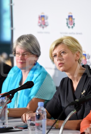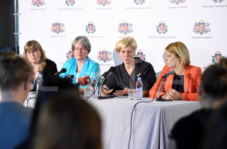 Veselības ministre Anda Čakša (no kreisās) un Nacionālā veselības ...
