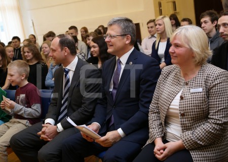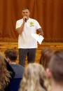 Pasākuma vadītājs Renārs Zeltiņš vada pasākumu Ziemeļvalstu ģimnāzijā ...