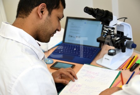 Rīgas Stradiņa universitātes students renovētajā mācību telpā ...