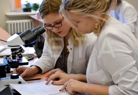 Rīgas Stradiņa universitātes studentes renovētajā mācību telpā ...