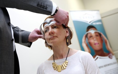 Sieviete testē jauno migrēnas ārstēšanas ierīci "Cefaly" ...