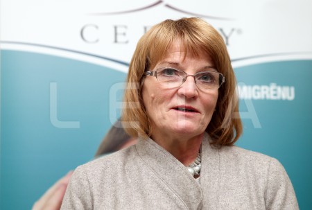 Latvijas Galvassāpju biedrības vadītāja Aija Freimane uzrunā ...