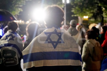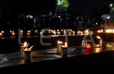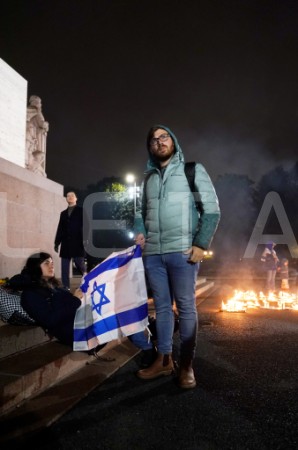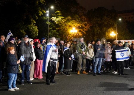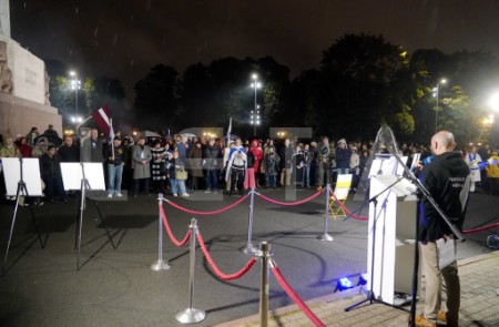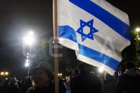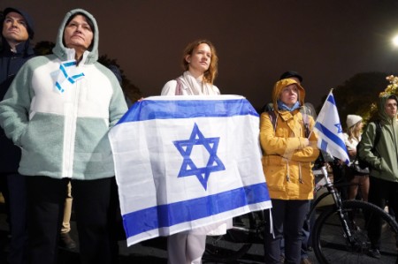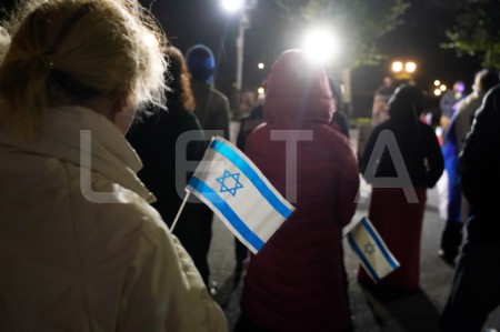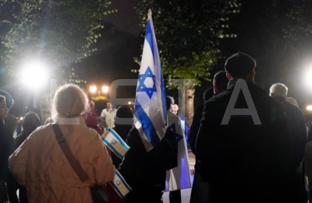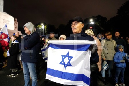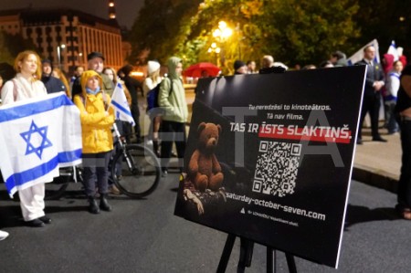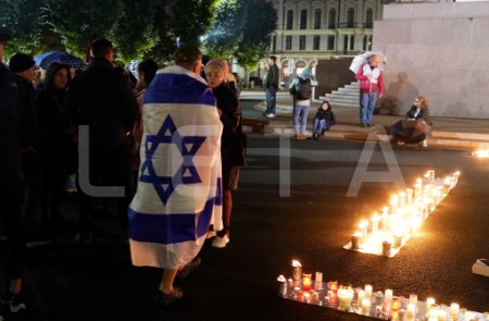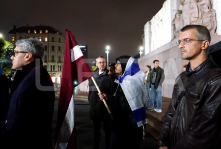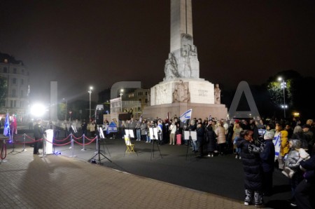 Pie Brīvības pieminekļa notiek pasākums Izraēlas atbalstam.