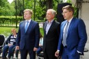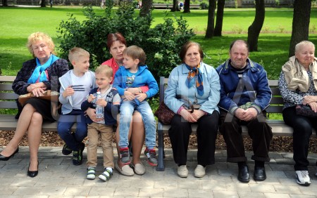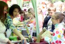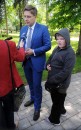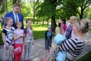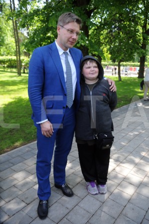 Rīgas domes priekšsēdētājs Nils Ušakovs fotografējas ar bērniem pēc ...