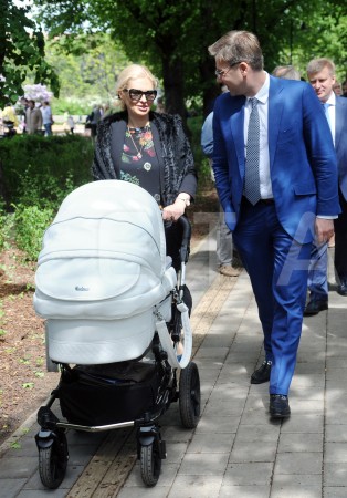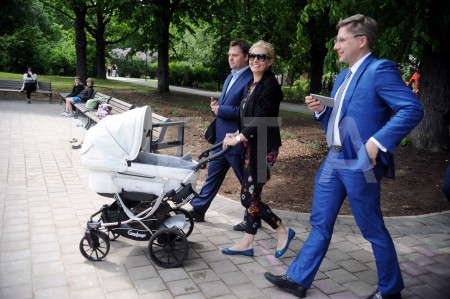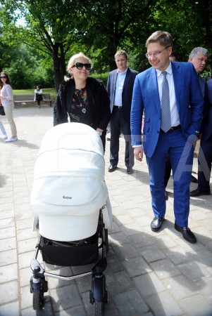 Rīgas domes priekšsēdētājs Nils Ušakovs ar kundzi Ilzi un bērnu ...