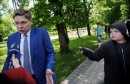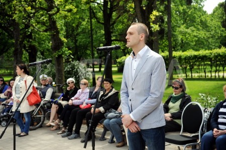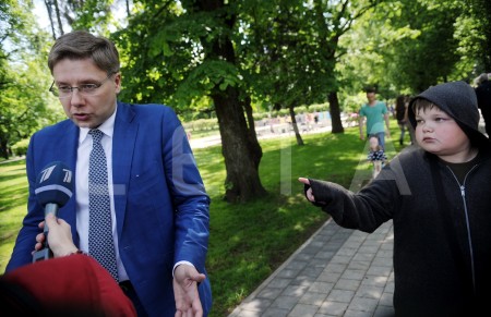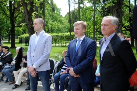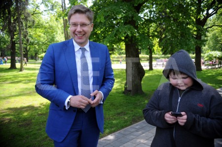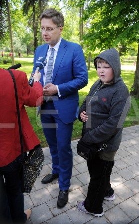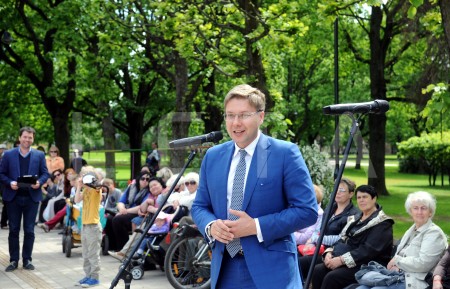 Rīgas domes priekšsēdētājs Nils Ušakovs atjaunotā Ziedoņdārza ...