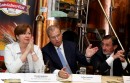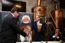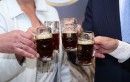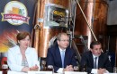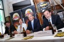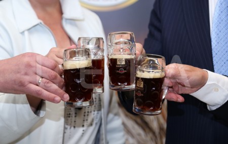 Preses konferences dalībnieki saskandina alus kausus preses ...