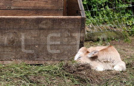 Ungārijas stepju govs mazulis Rīgas Nacionālajā zooloģiskajā dārzā.
