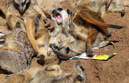 Surikati Rīgas Nacionālajā zooloģiskajā dārzā.
