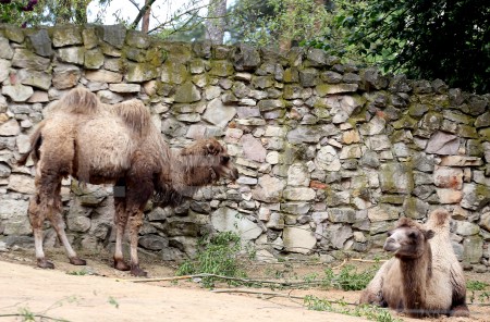 Divkupru kamielis Rīgas Nacionālajā zooloģiskajā dārzā.