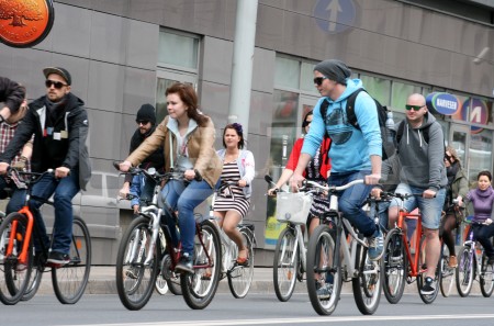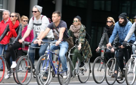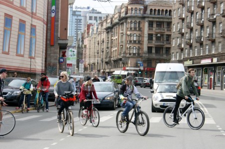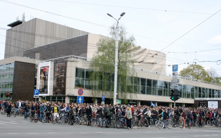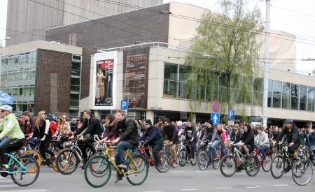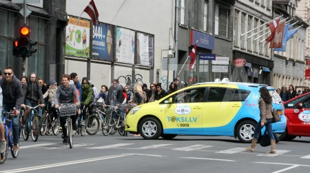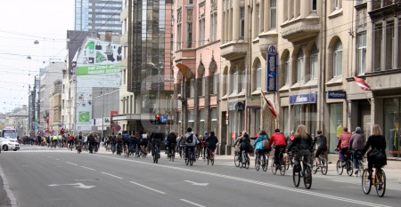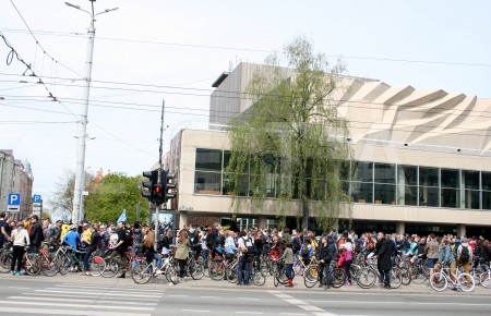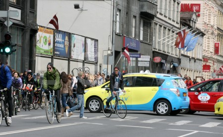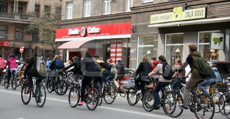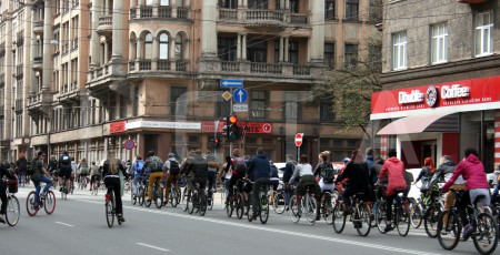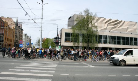 Brīvības ielā velobraucēju akcija "Kritiskā masa", kuras mēŗķis ir ...