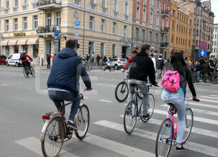 Brīvības ielā notiek velobraucēju akcija "Kritiskā masa", kuras ...