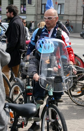 Bērns ar skrejriteni dip dap Brīvības ielā, kur notiek velobraucēju ...