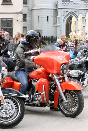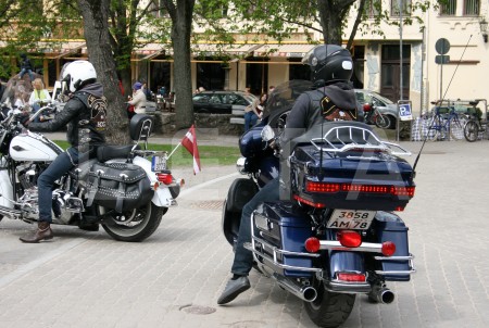 Līvu laukumā notiek motociklistu pulcēšanās, lai piedalītos motociklu ...