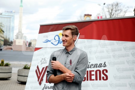 Riteņbraucējs Gatis Smukulis piedalās preses konferencē, kurā informē ...