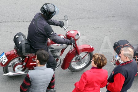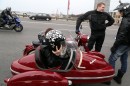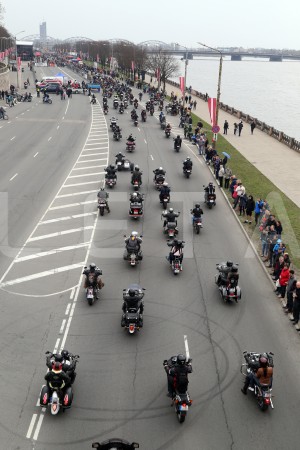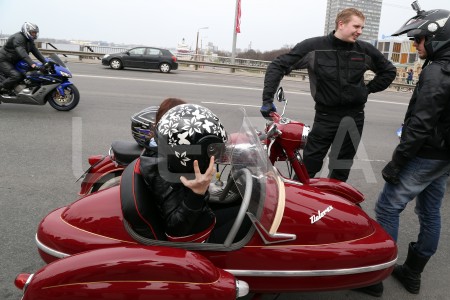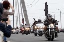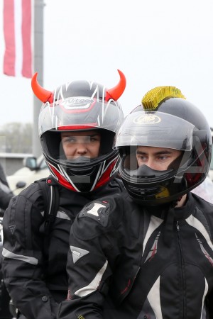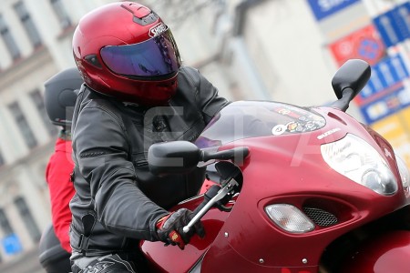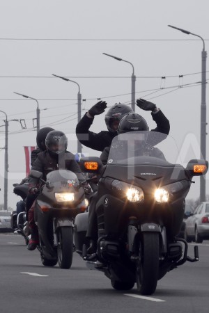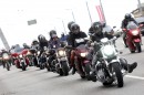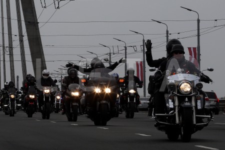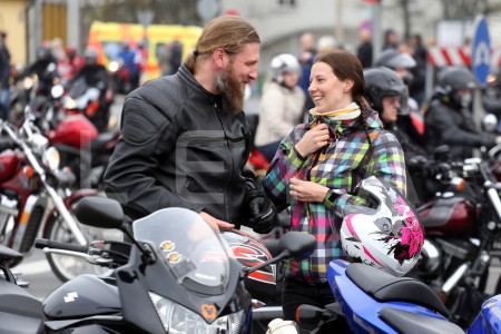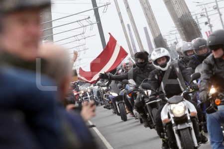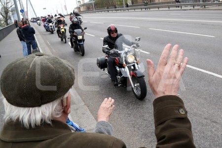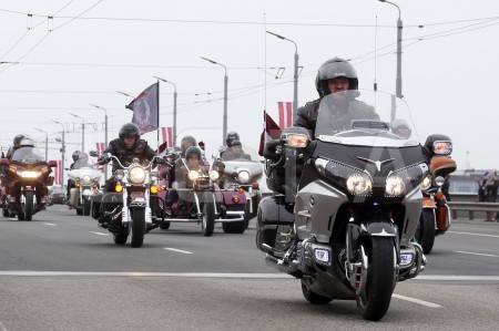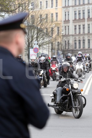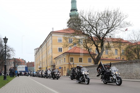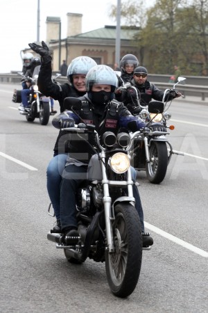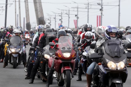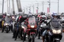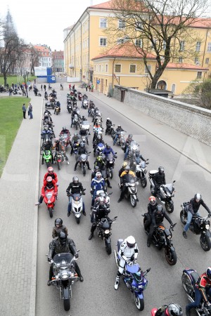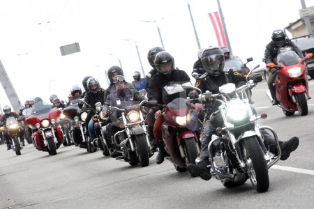 Motociklisti pulcējas pie tirdzniecības centra "Mols", lai piedalīto ...